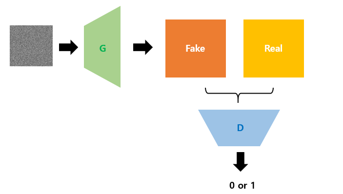 대표적으로는 image classification 문제에서 정답이 아닌 이미지를 생성할 때 사용된다. 아래와 같은 GAN의 구조에서 G 가 generative, 즉 생성하는 모델인데 그 결과는 실제 데이터와 구분 짓기 위해 fake라고 한다.