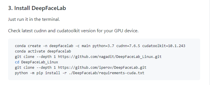 위 사이트는 deepfacelab 공식 깃헙 주소에서 제공하는 Linux를 위한 deepfacelab의 튜토리얼이다.