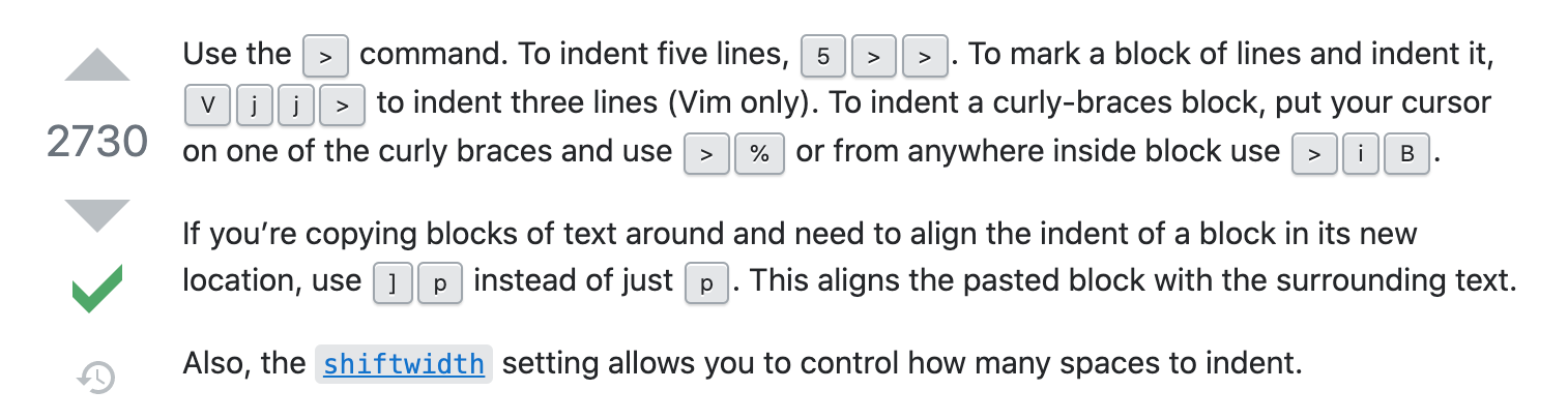 https://stackoverflow.com/questions/235839/indent-multiple-lines-quickly-in-vi