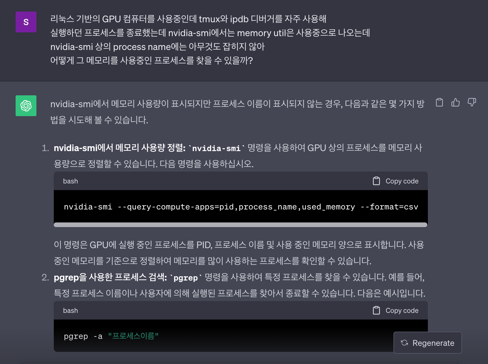 nvidia-smi하면 GPU util은 분명 먹고 있으나 process name에는 안잡히는 상황이 종종 생긴다