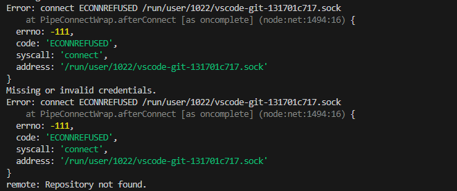 Error: connect ECONNREFUSED /run/user/1022/vscode-git-131701c717.sock