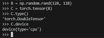 또한 일반적으로 numpy를 torch tensor로 변형하면 아래와 같이 cpu에 로드되면서 tensor로 변형된다